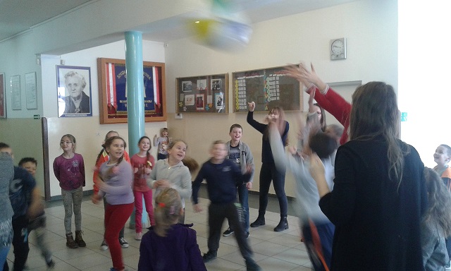 Wspólne przerwyOrganizacja wspólnych przerw Standard II Uczniowie klas gimnazjalnych prowadzą przerwy dla uczniów klas młodszych. Dzięki organizacji wspólnych zabaw uczniowie mogą się integrować i przyjemnie spędzić czas.