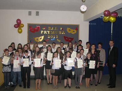 Bal Prymusa 2013Ach, co to był za bal! Dnia 08.02.2013 r. w Zespole Szkolno-Przedszkolnym w Kozłowie w bardzo uroczystej atmosferze odbył się Bal Prymusa, który od jedenastu lat jest tradycją szkoły. Bal organizowany jest dla uczniów, którzy są chlubą naszej szkoły - osiągają bardzo dobre wyniki w nauce, wyróżniają się zaangażowaniem społecznym. Uroczystość skupia nie tylko uczniów, których w tym roku było 26, ale także ich rodziców i zaproszonych gości. Wspólna celebracja odniesionych sukcesów ma za zadanie nie tylko nagradzać, ale także motywować do dalszych konstruktywnych działań. Możliwość przeżywania sukcesów wspólnie z rodzicami to chwila wyjątkowa, która jeszcze bardziej uświadamia każdemu, że warto być dobrym uczniem i dobrym człowiekiem. Na początku uroczystości Prymusom zostały wręczone statuetki ufundowane przez Wójta Gminy Kozłowo- Pana Jacka Jankowskiego, oprócz statuetek uczniowie otrzymali listy pochwalne, a ich rodzice listy gratulacyjne. Po wręczeniu listów gratulacyjnych i statuetek na uczniów czekała nie lada niespodzianka - tort, który również został ufundowany przez Pana Wójta. Po części oficjalnej przyszedł czas na zabawę, uczniowie pod kierunkiem nauczycieli przygotowali przedstawienie pt.„ Nasze szkółkowo”. Inscenizacja rozbawiła niektórych do łez. Młodzi aktorzy zostali nagrodzeni przez publiczność gromkimi brawami. Nie obyło się bez podziękowań dla rodziców i nauczycieli. Po części artystycznej nastąpiła wspólna zabawa z konkursami, oraz poczęstunek. Wszyscy świetnie się bawili do późnych godzin wieczornych. W trakcie uroczystości panowała bardzo miła i podniosła atmosfera. Bal Prymusa dostarcza uczniom, rodzicom, nauczycielom oraz zaproszonym gościom wielu emocji i wzruszeń, ta uroczystość na pewno na długo pozostanie w naszej pamięci. Pragniemy serdecznie podziękować Rodzicom Prymusów za przygotowanie poczęstunku. Tytuł Prymusa otrzymali: