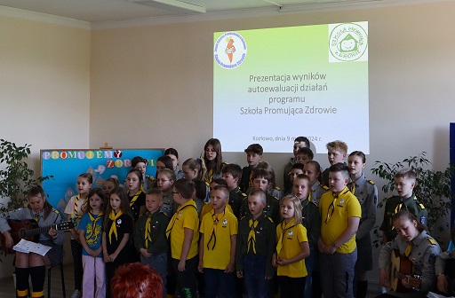 Dnia 9 maja 2024 r. w Zespole Szkolno-Przedszkolnym w Kozłowie odbyła się Publiczna prezentacja wyników autoewaluacji działań programu Szkoła Promująca Zdrowie. W spotkaniu wzięli udział członkowie społeczności szkolnej, partnerzy szkoły, przedstawiciele władz lokalnych i Wojewódzki Koordynator Szkół Promujących Zdrowie pani Anna Zdaniukiewicz.